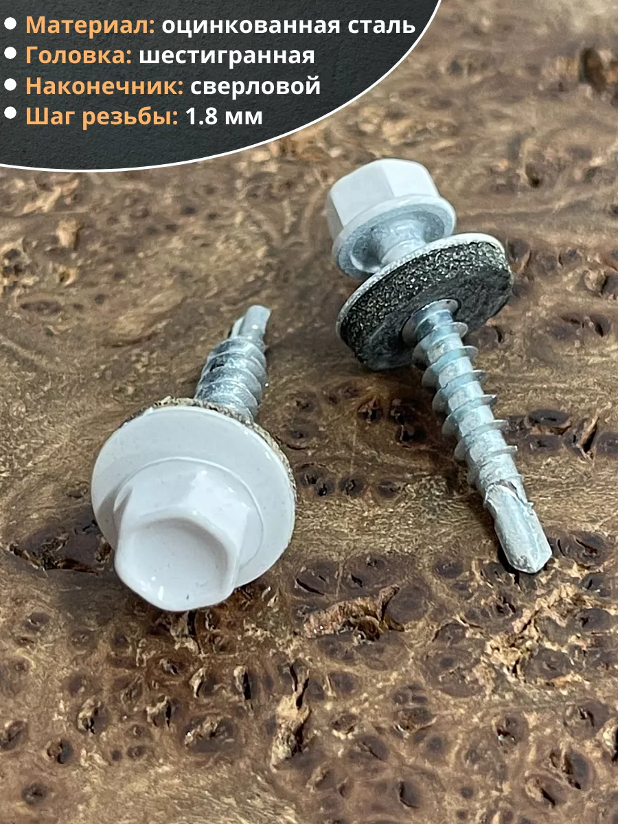 Саморез кровельный, 4,8х35 сигнально-белый RAL9003 50 шт