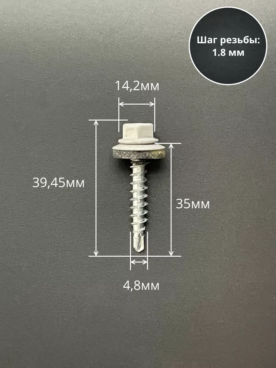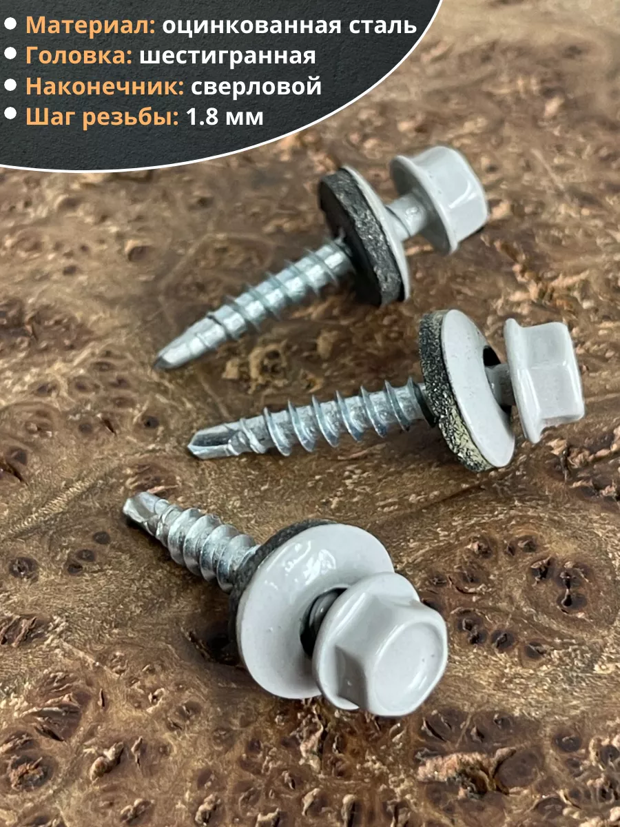 Саморез кровельный, 4,8х35 сигнально-серый RAL7004 50 шт