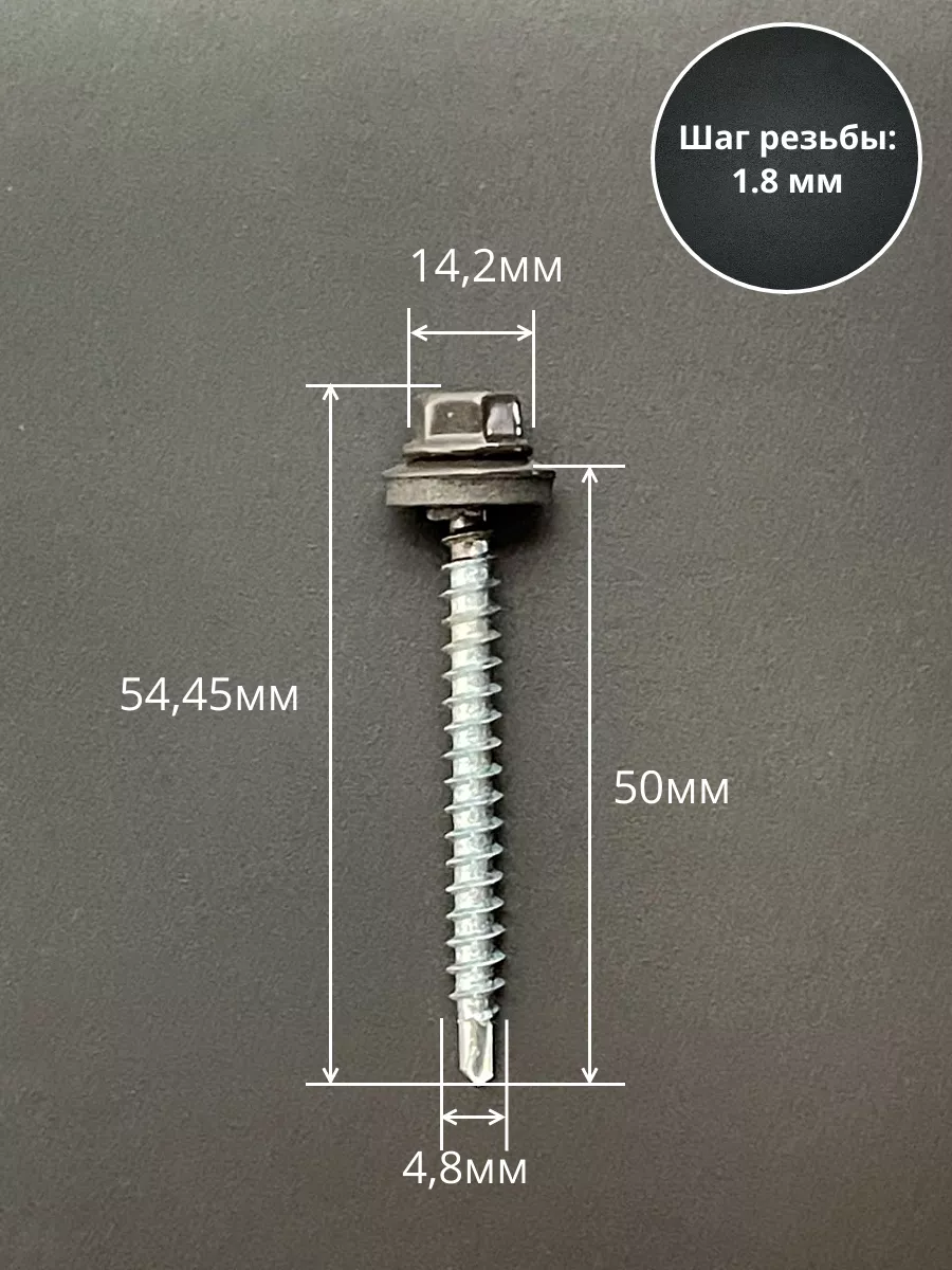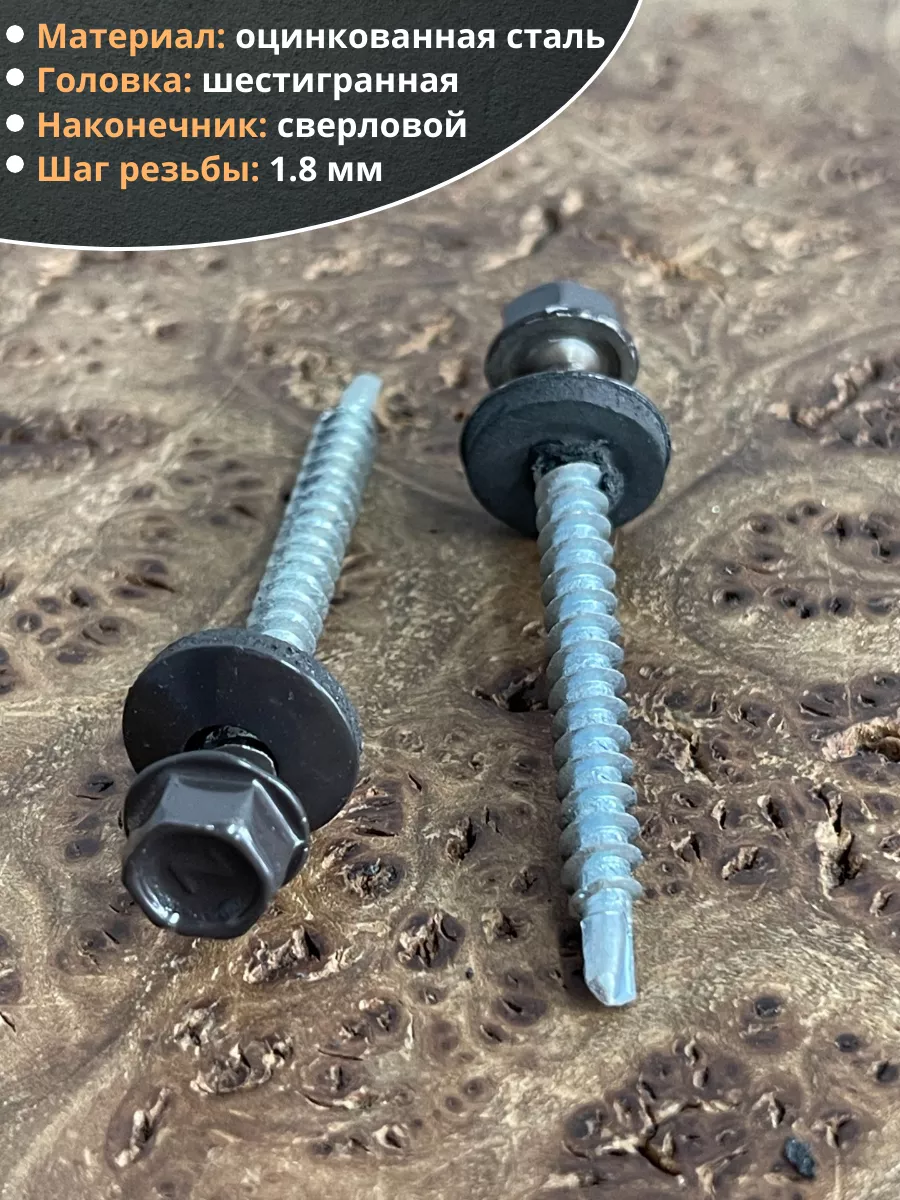 Саморез кровельный, 4,8х50/51 серо-коричневый RAL8019 50 шт