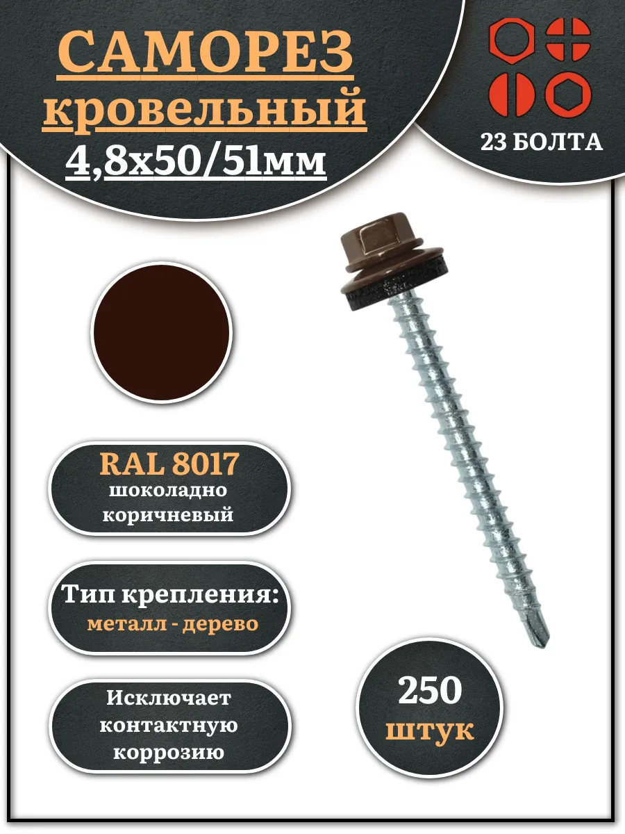 Саморез кровельный, 4,8х50/51 шоколадно-коричневый RAL8017 250 шт