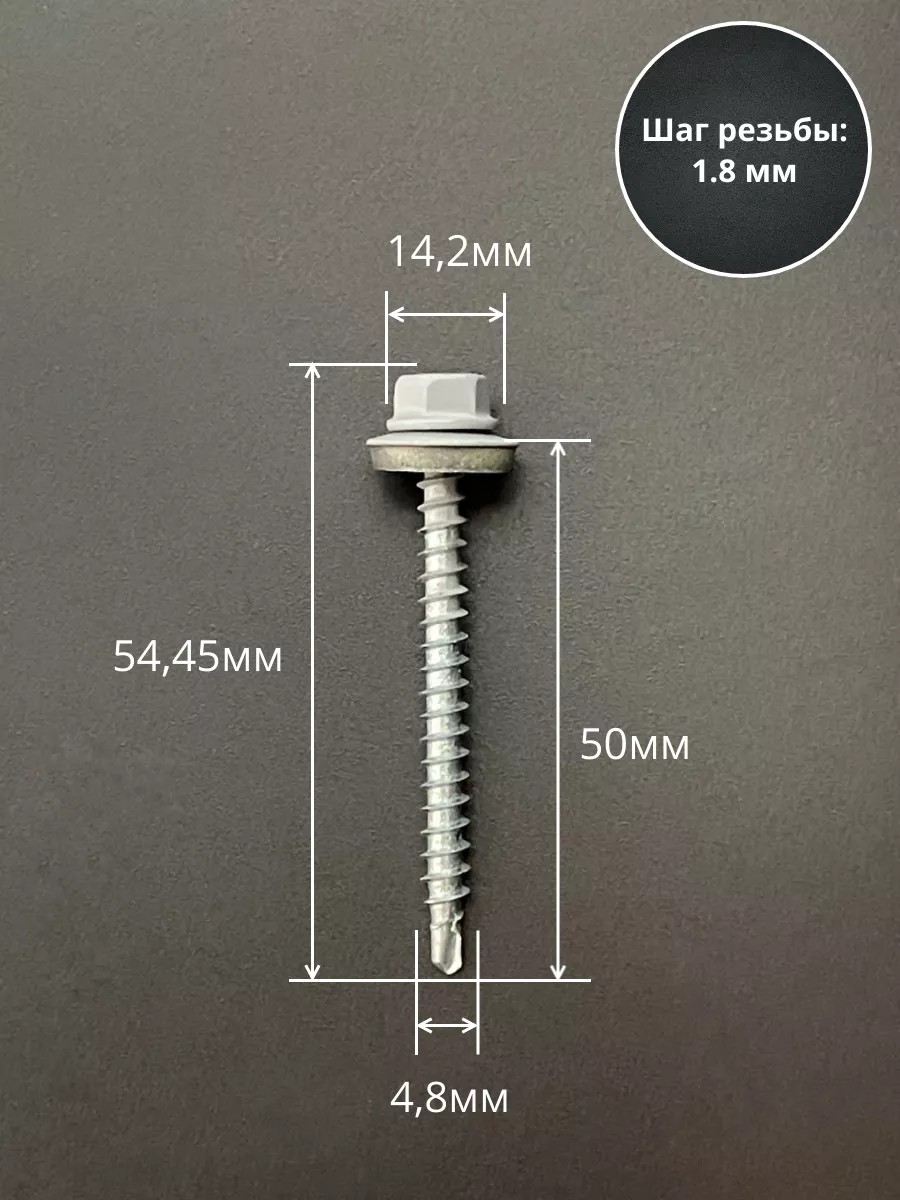 Саморез кровельный, 4,8х50/51 сигнально-серый RAL7004 50 шт