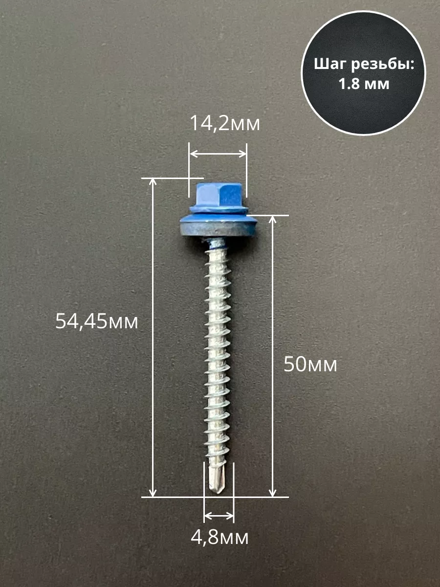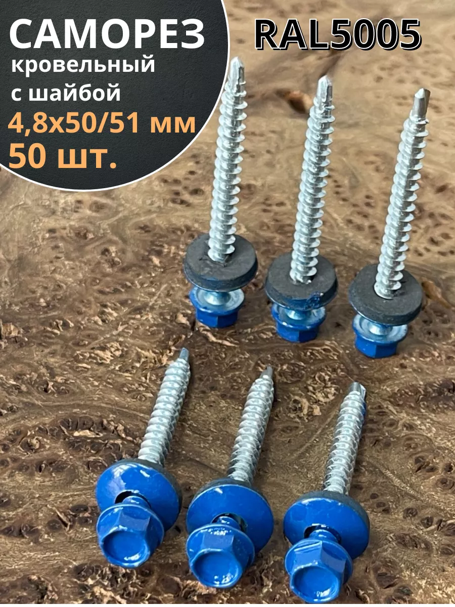 Саморез кровельный, 4,8х50/51 сигнально-синий RAL5005 50 шт