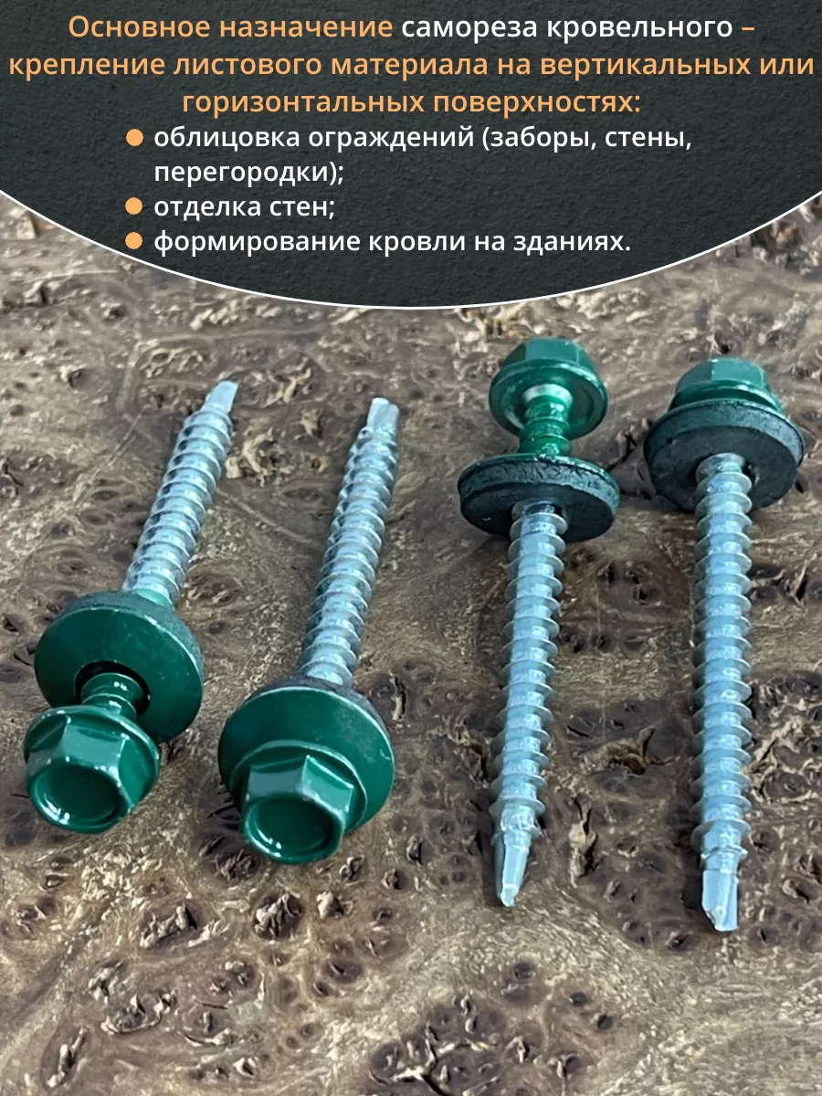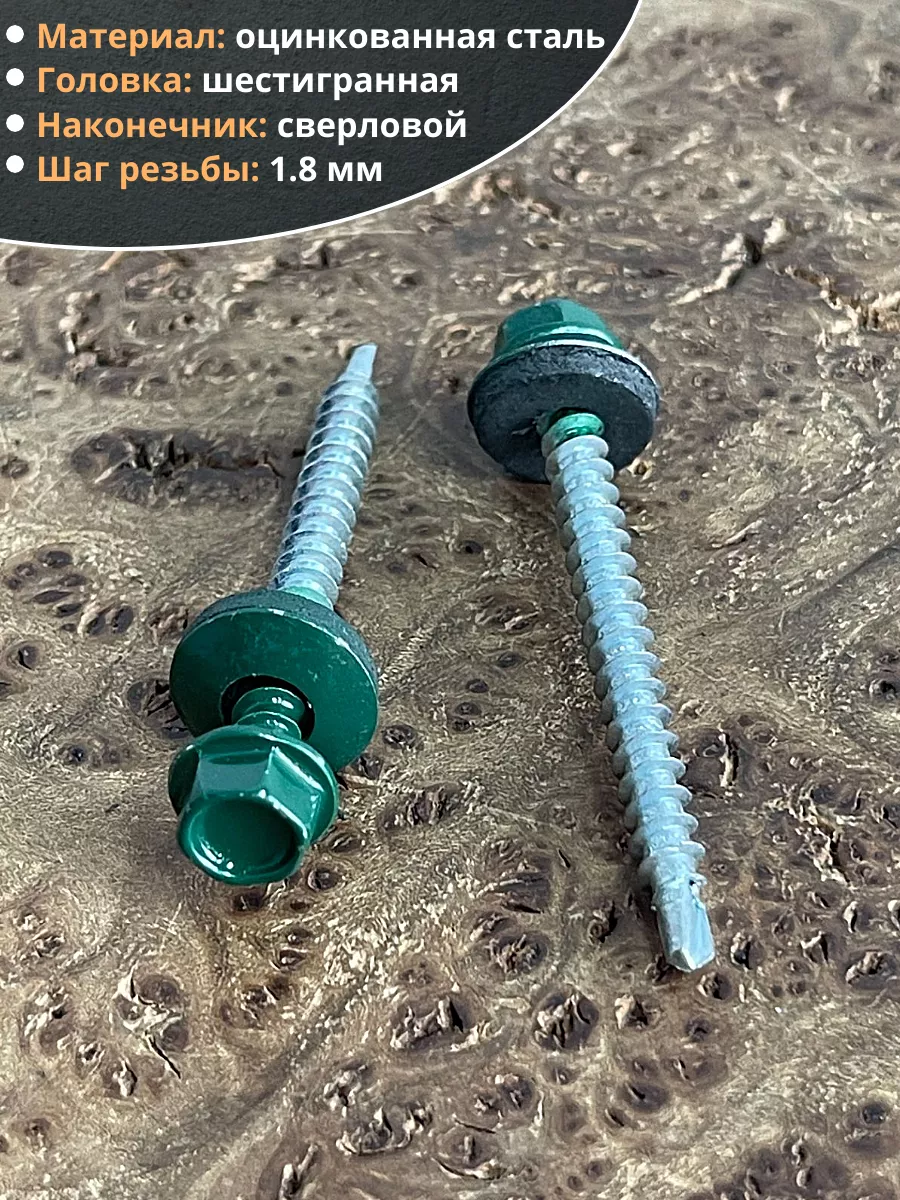 Саморез кровельный, 4,8х50/51 зеленый мох RAL6005 50 шт