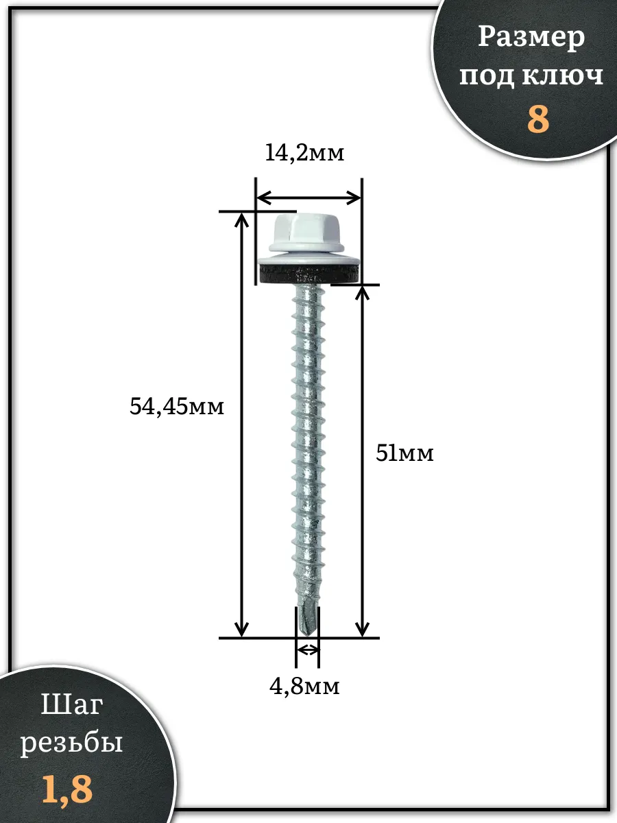Саморез кровельный, 4,8х51 сигнально-белый RAL9003 500 шт