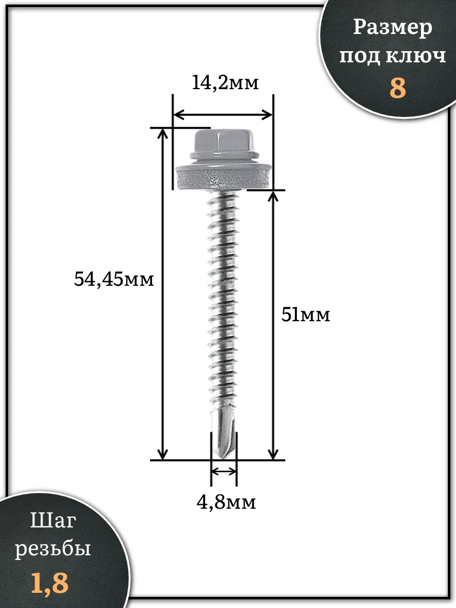 Саморез кровельный, 4,8х51 сигнально-серый RAL7004 250 шт