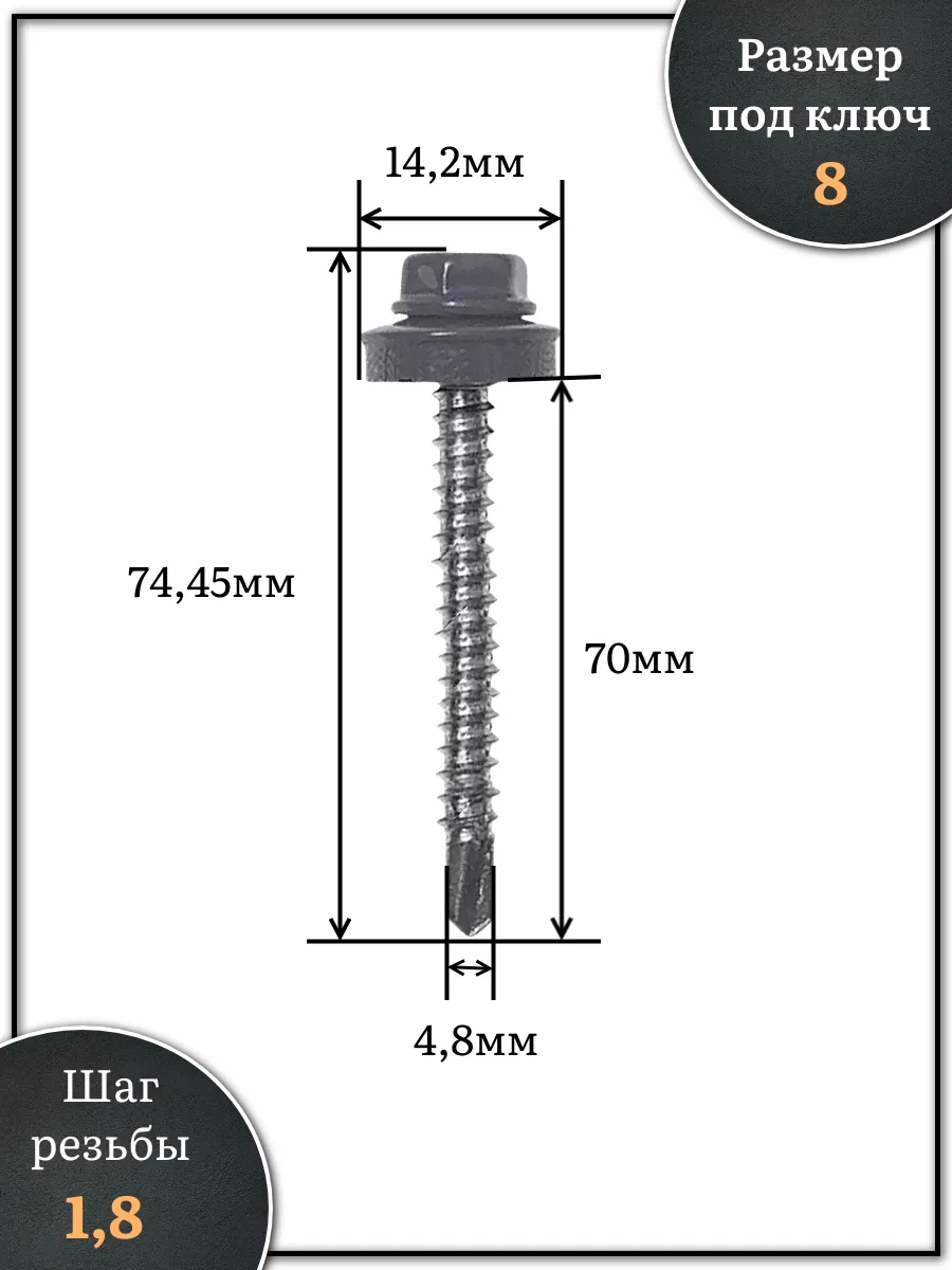 Саморез кровельный, 4,8х70 графитовый серый RAL7024 1000 шт