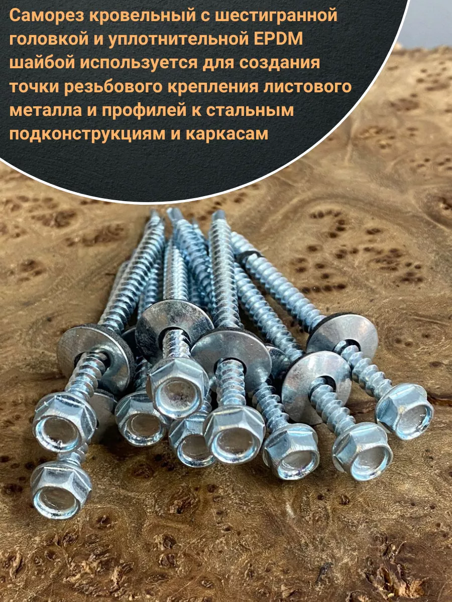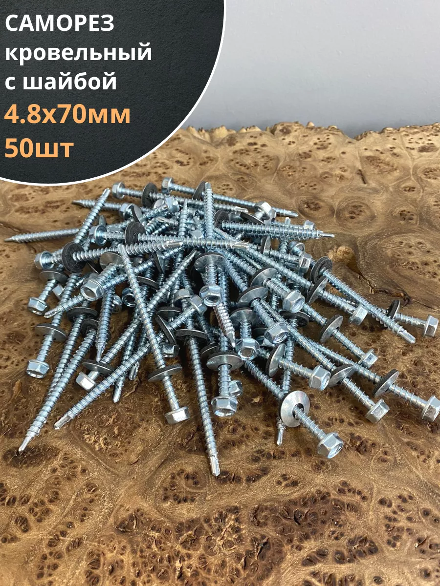 Саморез кровельный 4,8х70 мм с шайбой (под сверло),ОЦ