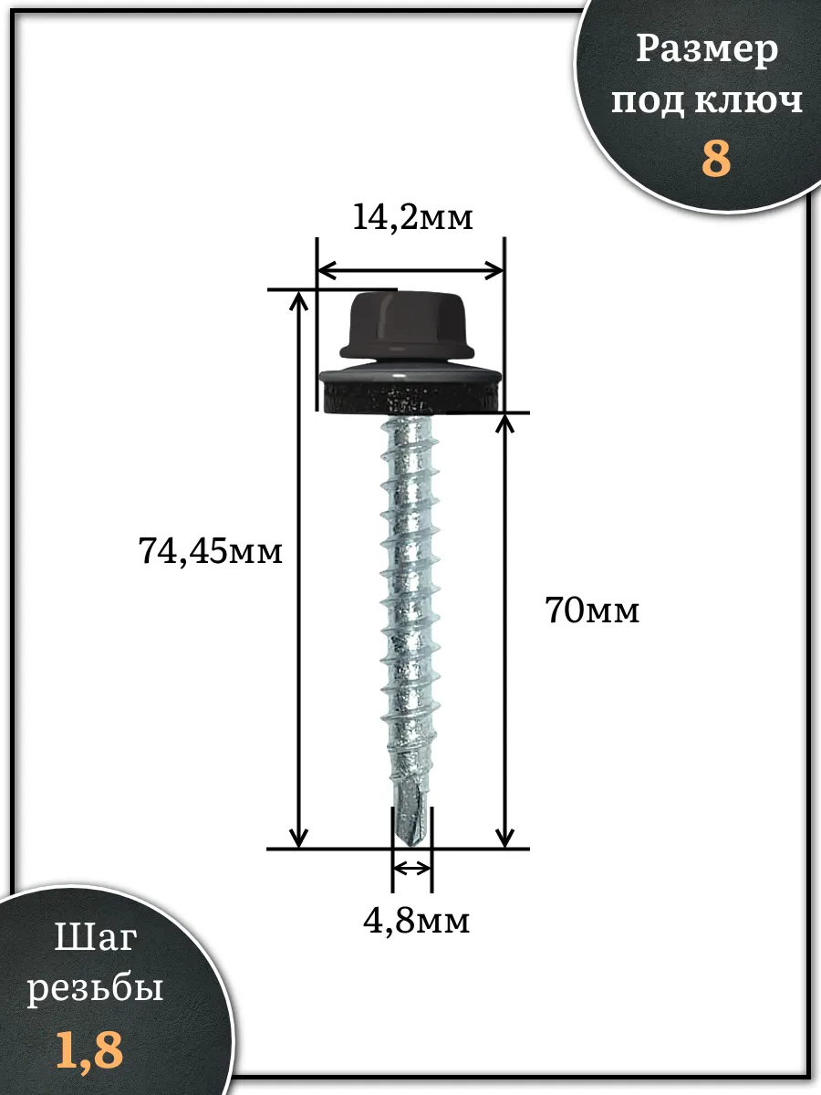 Саморез кровельный, 4,8х70 серо-коричневый RAL8019 500 шт