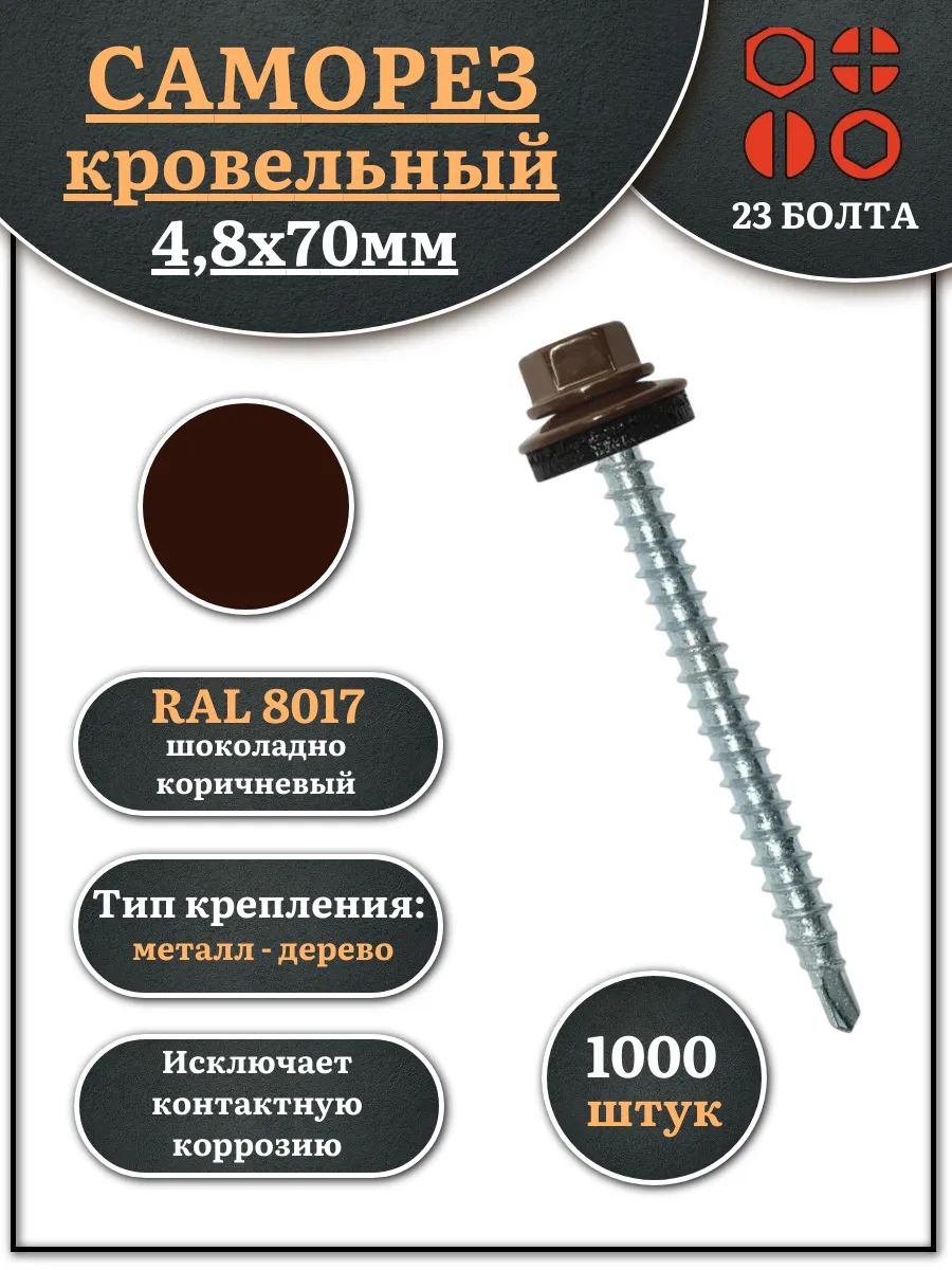 Саморез кровельный, 4,8х70 шоколадно-коричневый RAL8017 1000шт