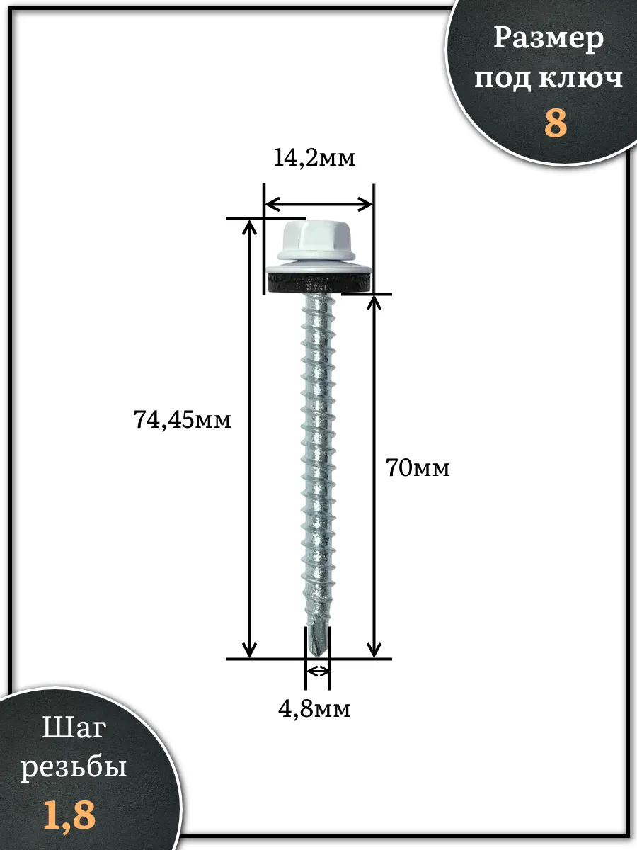 Саморез кровельный, 4,8х70 сигнально-белый RAL9003 500 шт