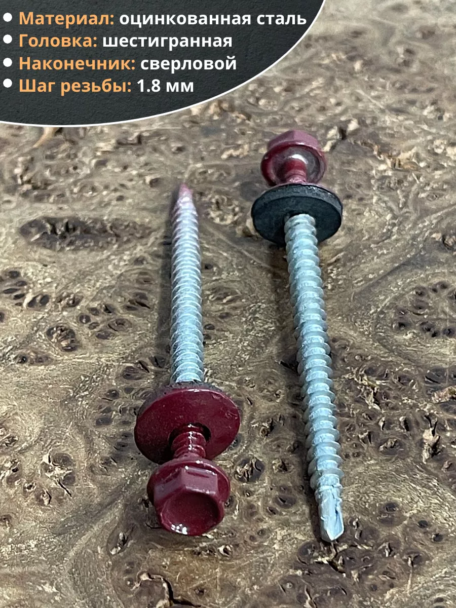 Саморез кровельный, 4,8х70 винно-красный RAL3005 50 шт