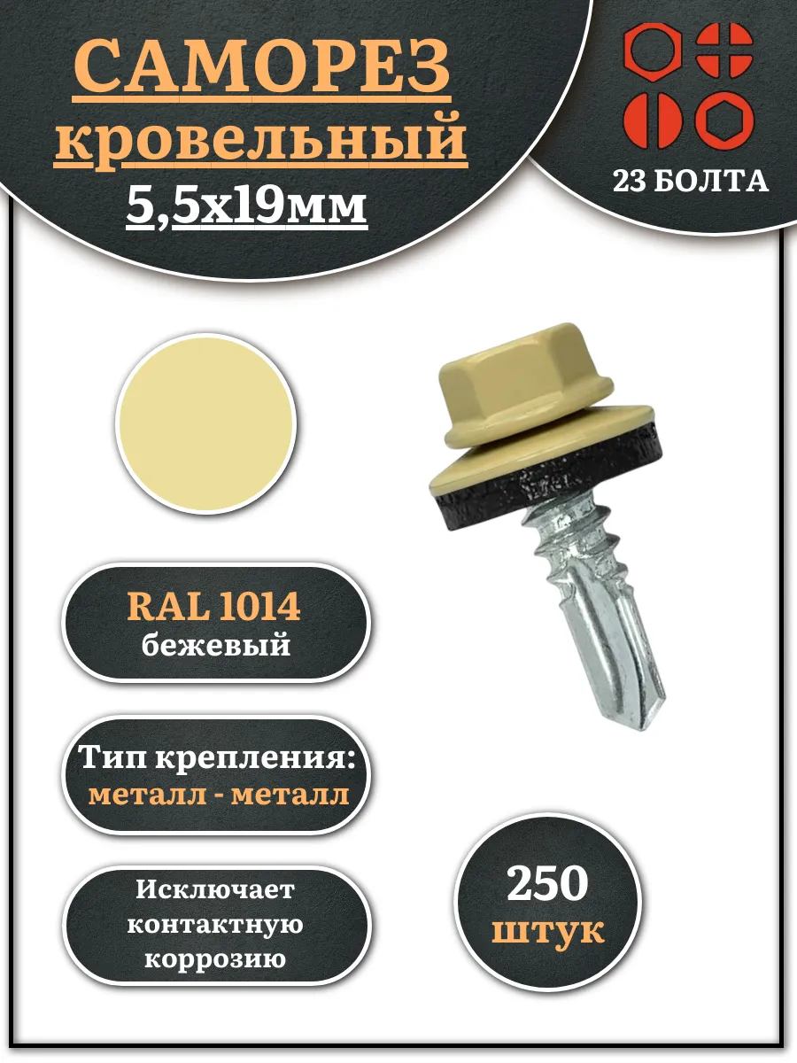 Саморез кровельный, 5,5х19 бежевый RAL1014 250 шт
