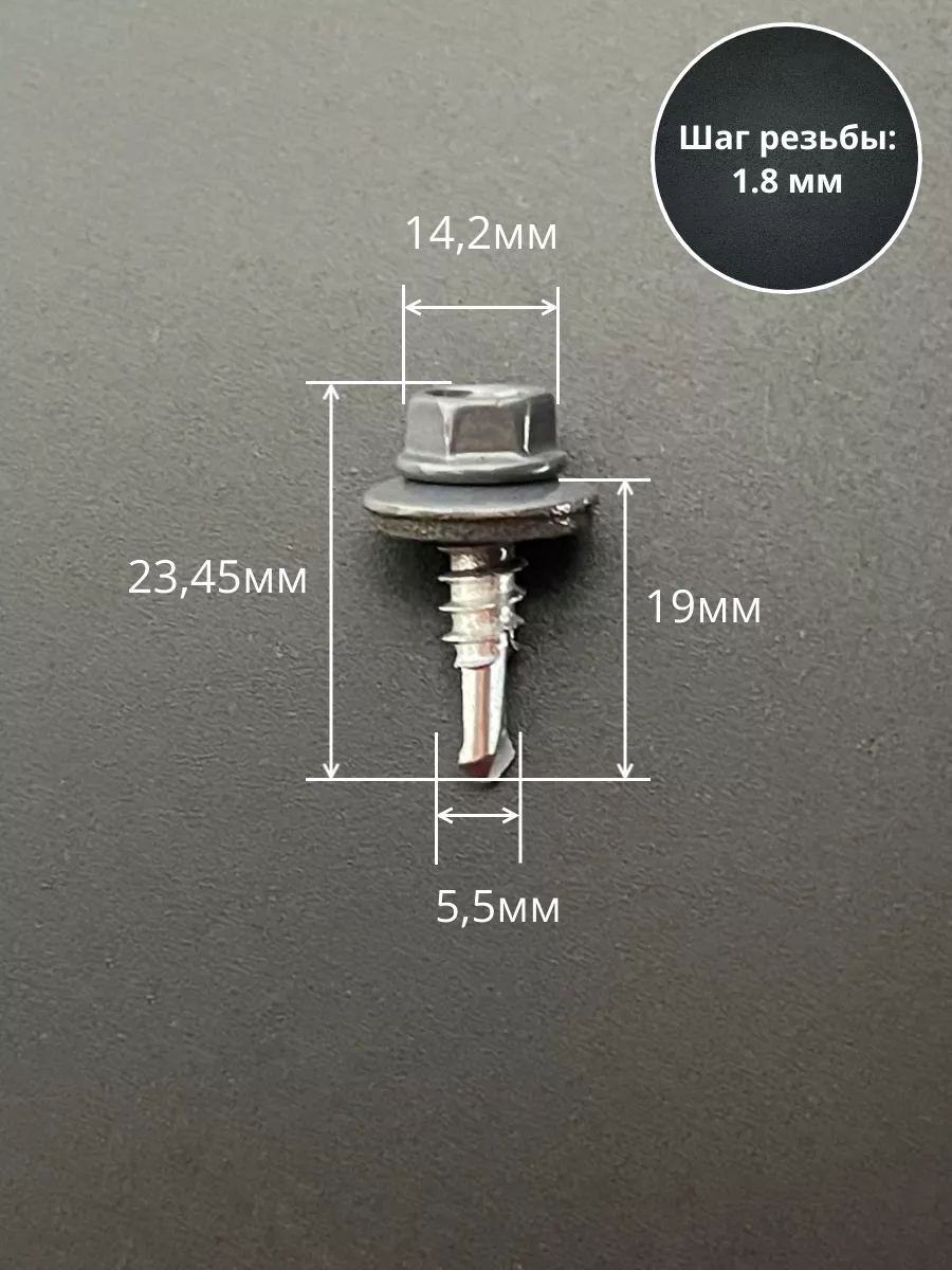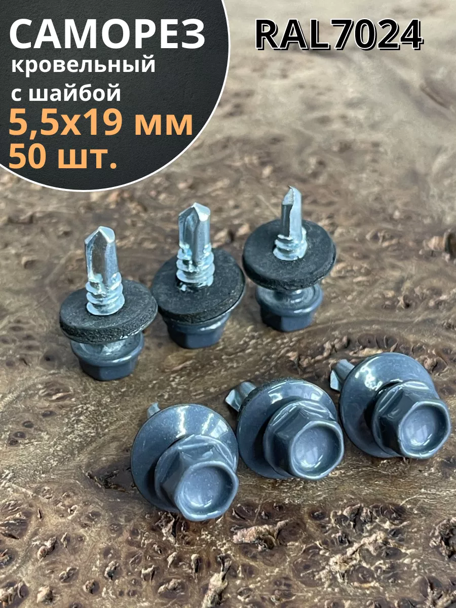 Саморез кровельный, 5,5х19 графитовый серый RAL7024 50 шт