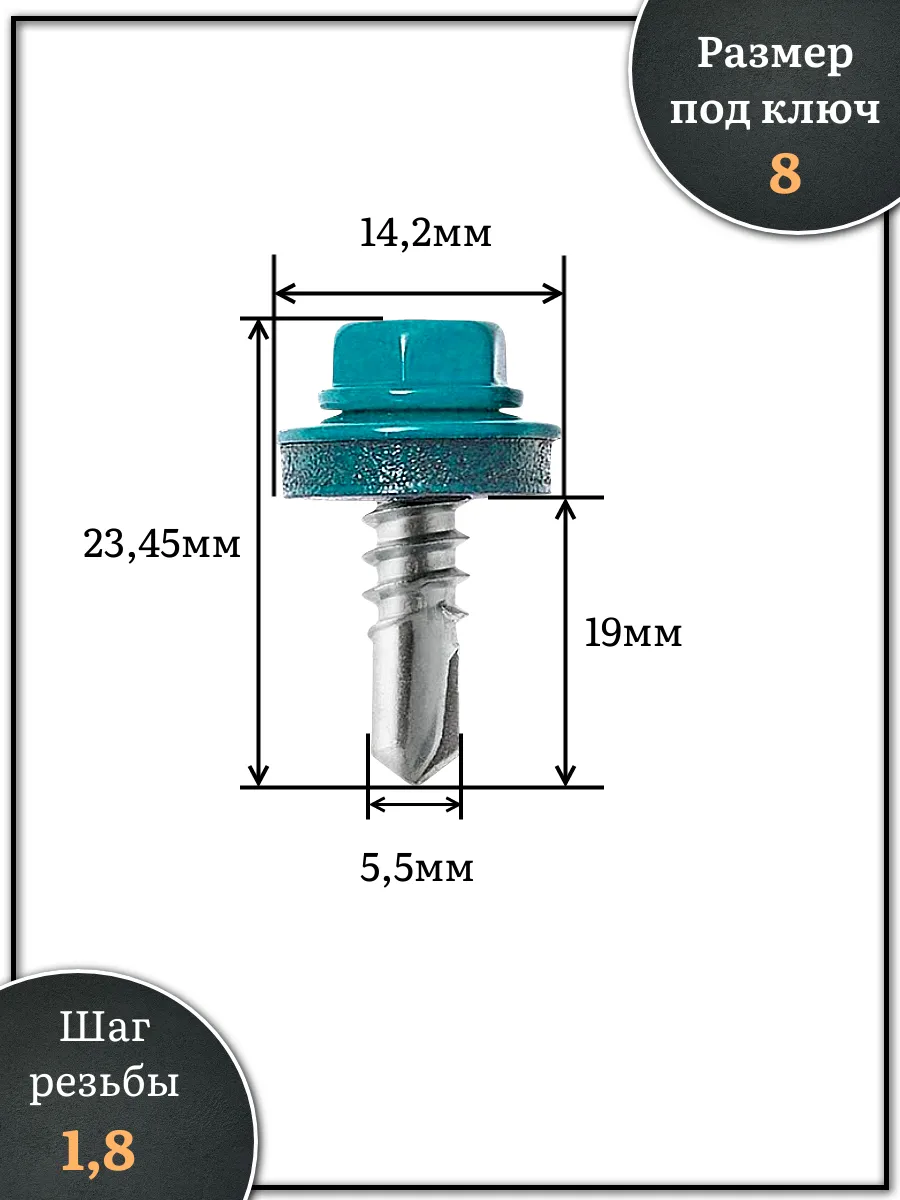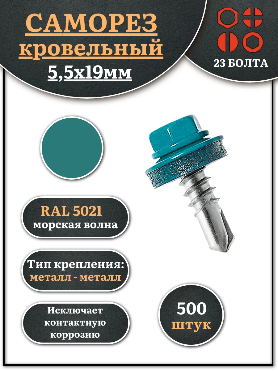 Саморез кровельный, 5,5х19 морская волна RAL5021 500 шт