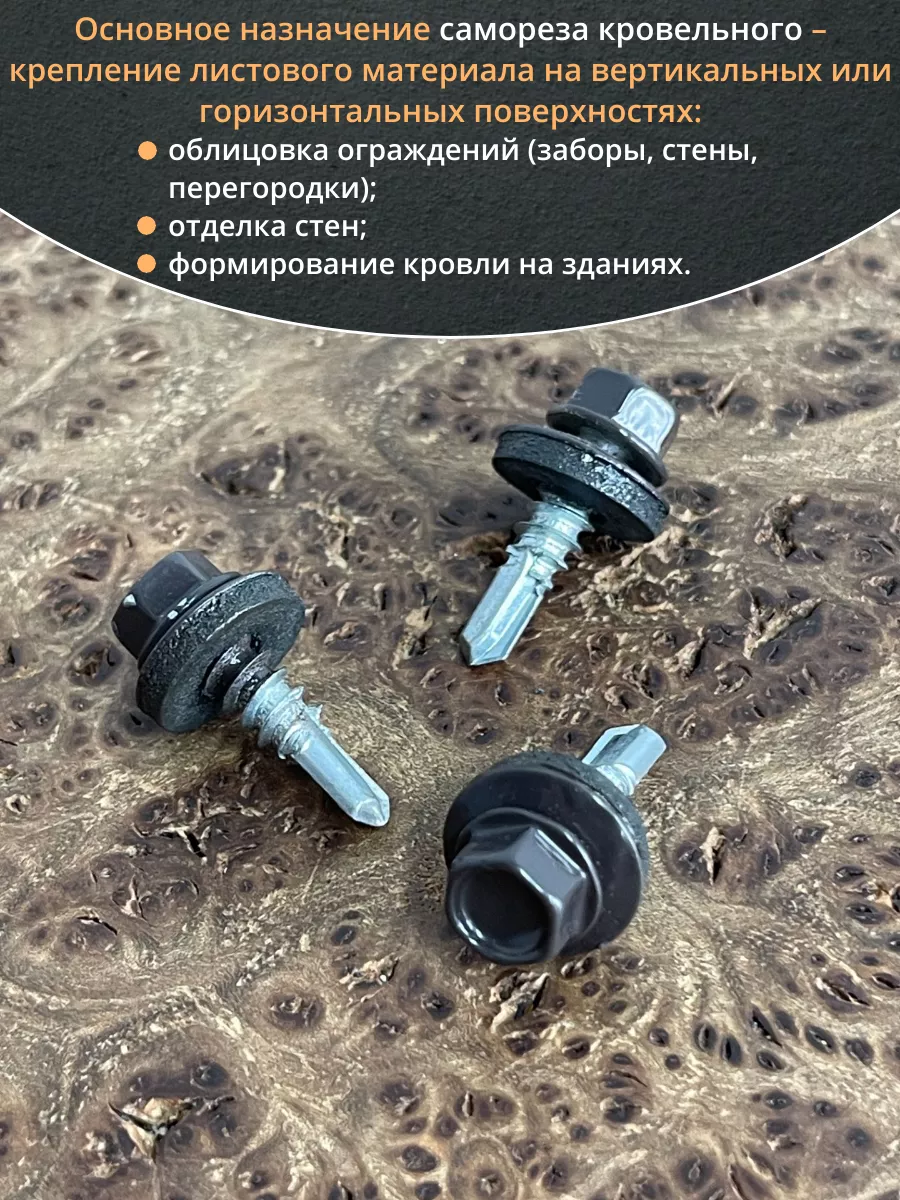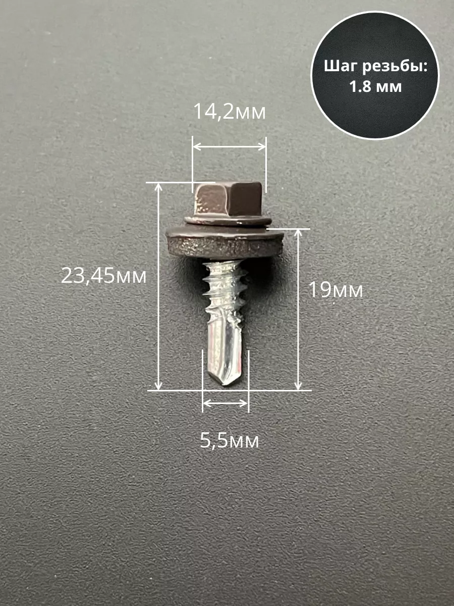 Саморез кровельный, 5,5х19 серо-коричневый RAL8019 50 шт