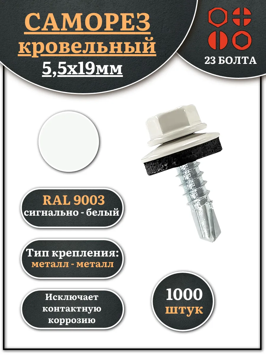 Саморез кровельный, 5,5х19 сигнально-белый RAL9003 1000 шт