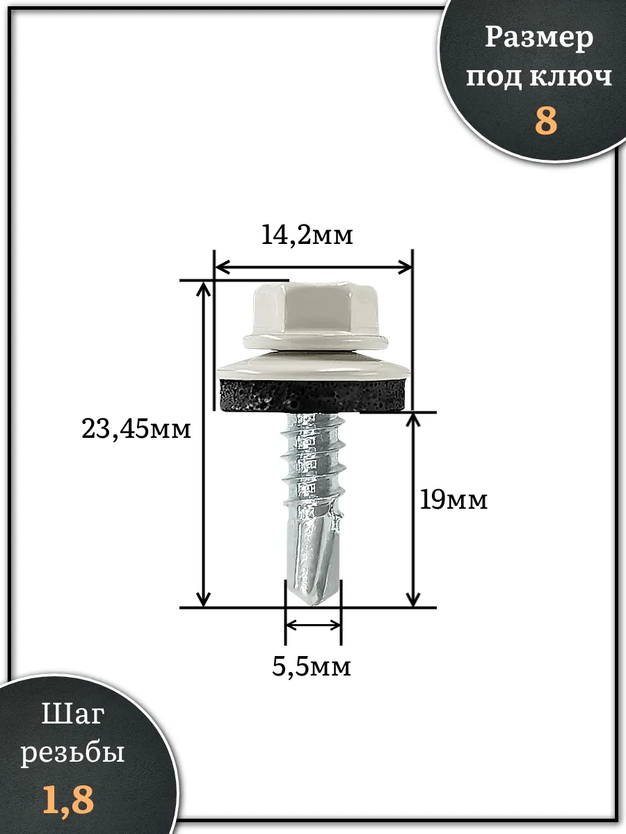 Саморез кровельный, 5,5х19 сигнально-белый RAL9003 500 шт