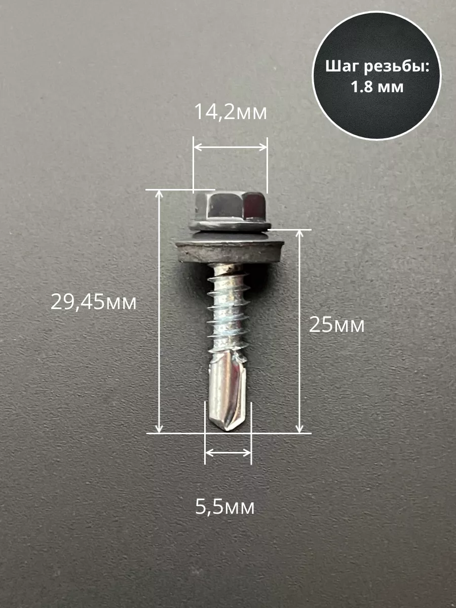 Саморез кровельный, 5,5х25 графитовый серый RAL7024 50 шт