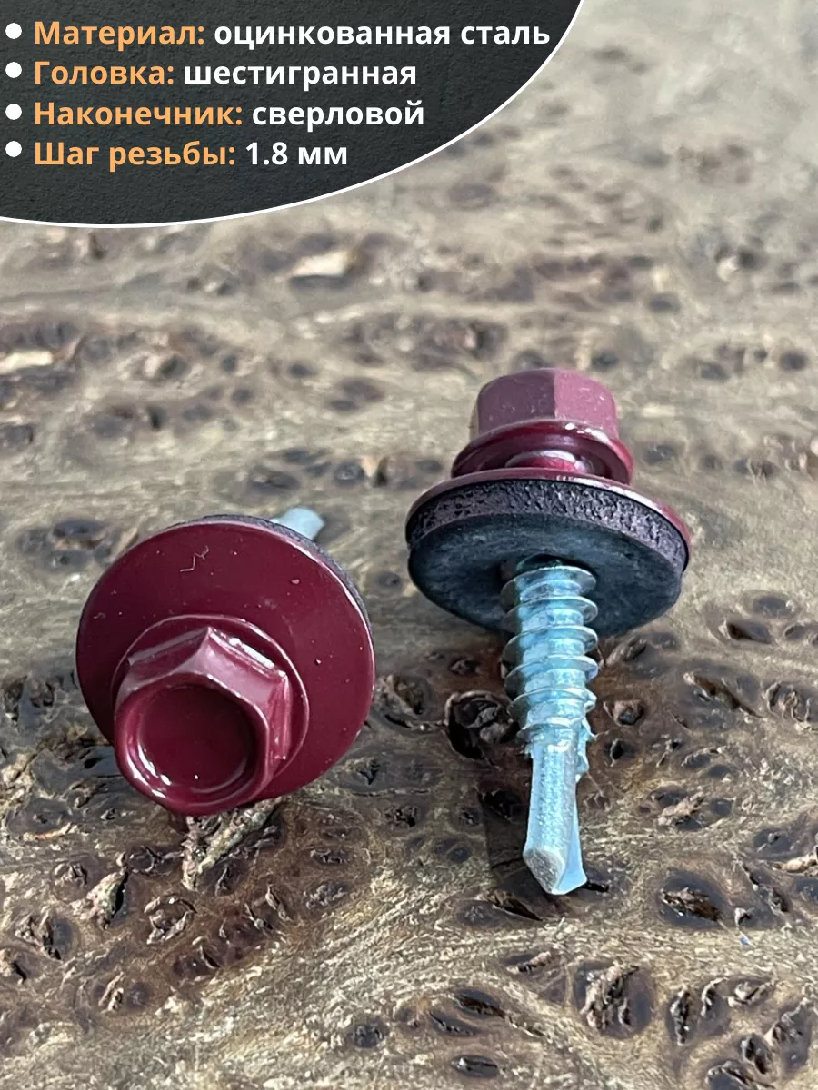 Саморез кровельный, 5,5х25 винно-красный RAL3005 50 шт