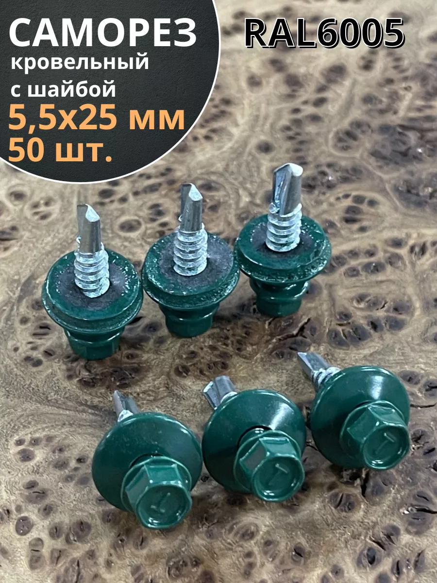 Саморез кровельный, 5,5х25 зеленый мох RAL6005 50 шт