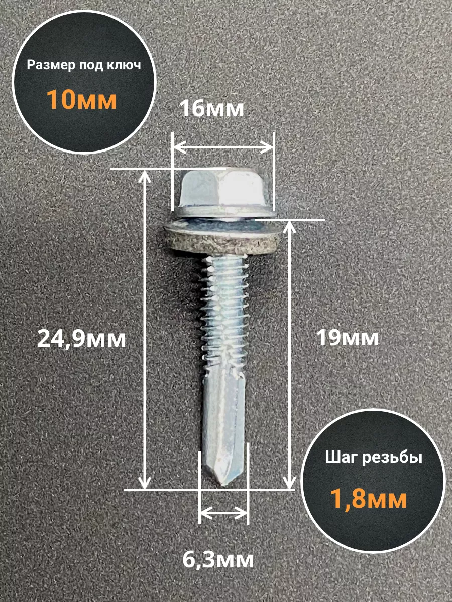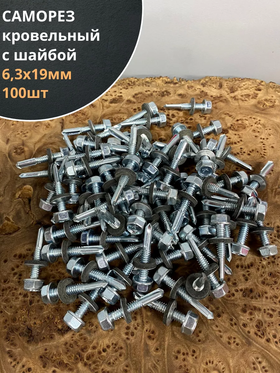 Саморез кровельный 6,3х19 мм с шайбой (под сверло),ОЦ 100шт