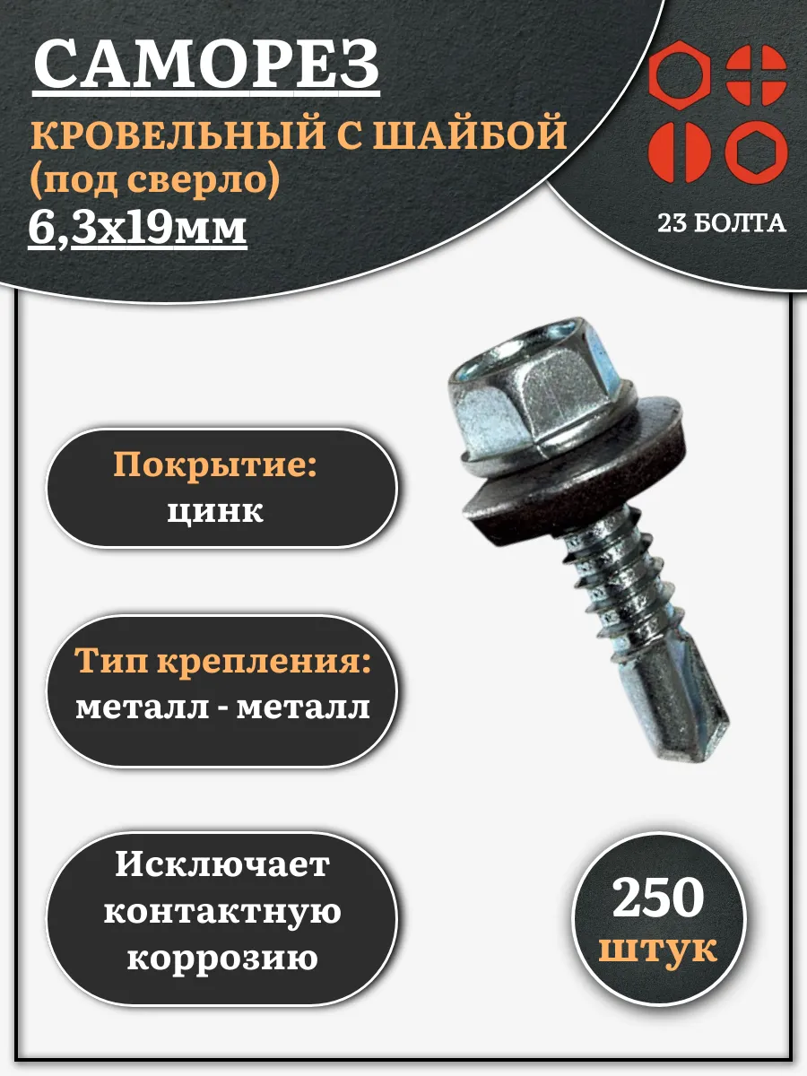 | Саморез кровельный 6,3х19 мм с шайбой (под сверло),ОЦ 500шт. | B03006301934307ф500 | 1 шт. |