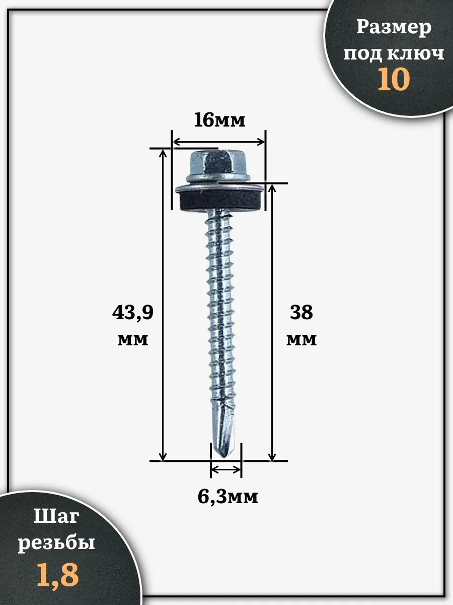 | Саморез кровельный 6,3х38 мм с шайбой (под сверло),ОЦ 250шт. | B03006303833H07ф250 | 1 шт. |