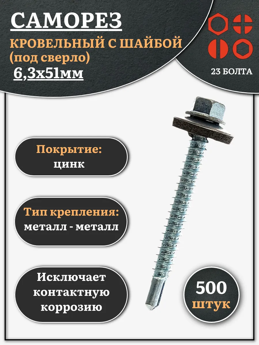 | Саморез кровельный 6,3х51 мм с шайбой (под сверло),ОЦ 500шт. | B03006305134107ф500 | 1 шт. |