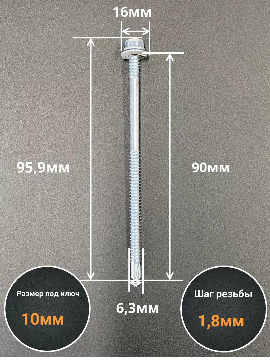 Саморез кровельный 6,3х90 мм с шайбой (под сверло),ОЦ 50шт.