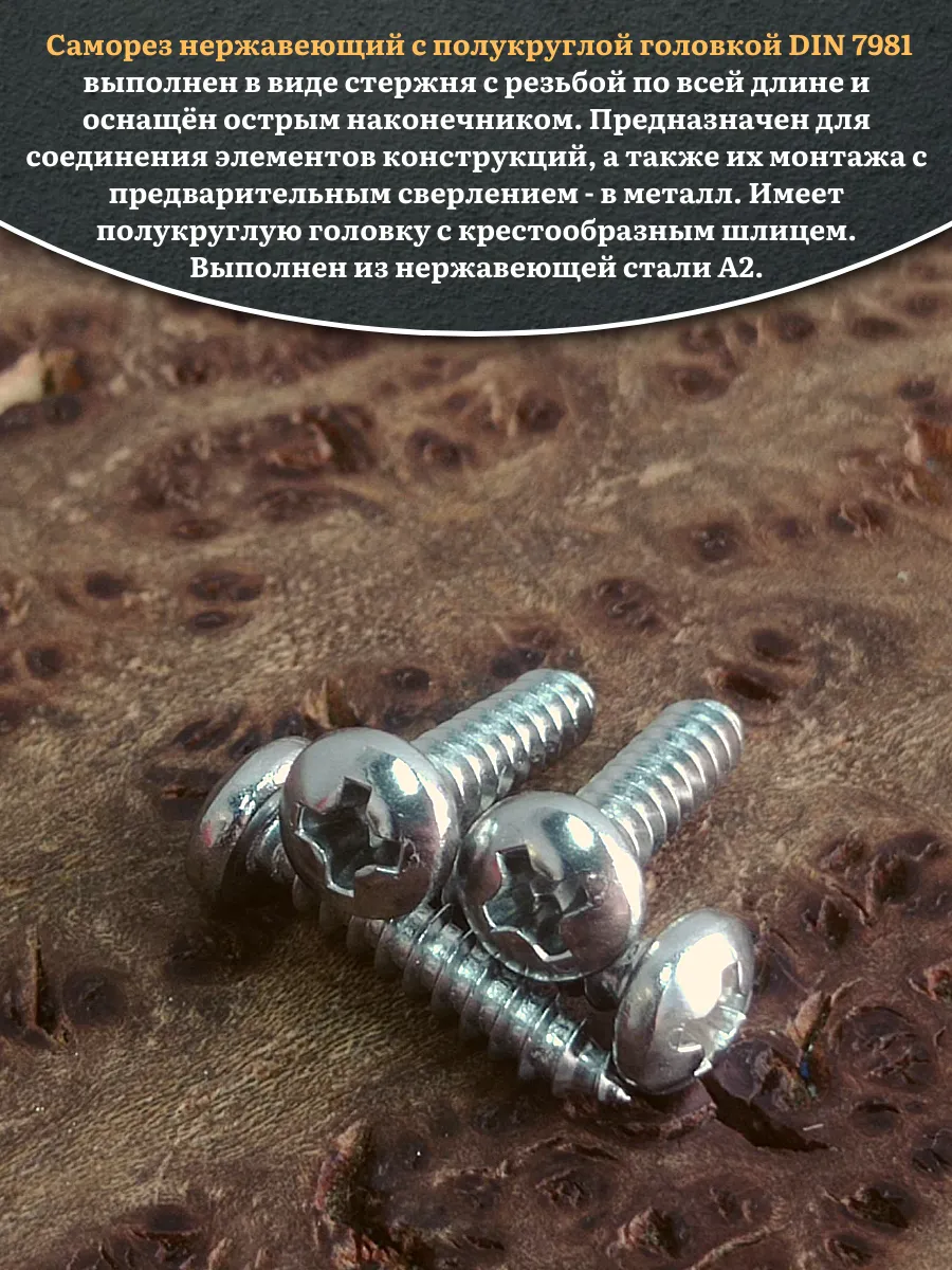 Саморез нержавеющий полукруглая гол. 3,5х16 DIN7981 , 20 шт.