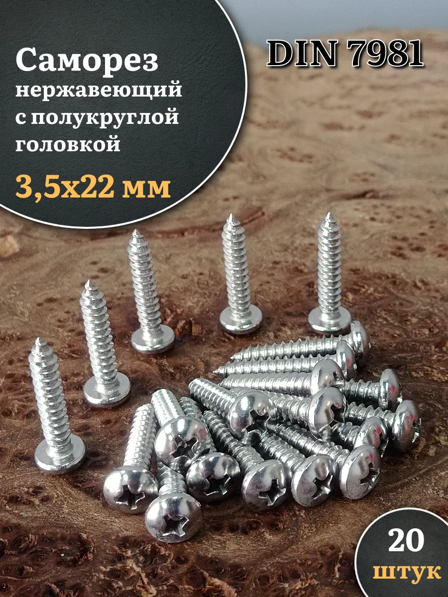 Саморез нержавеющий полукруглая гол. 3,5х22 DIN7981 , 20 шт.