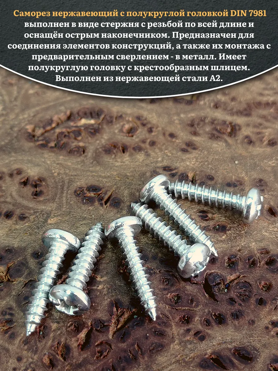 Саморез нержавеющий полукруглая гол. 4,2х13 DIN7981 , 20 шт.