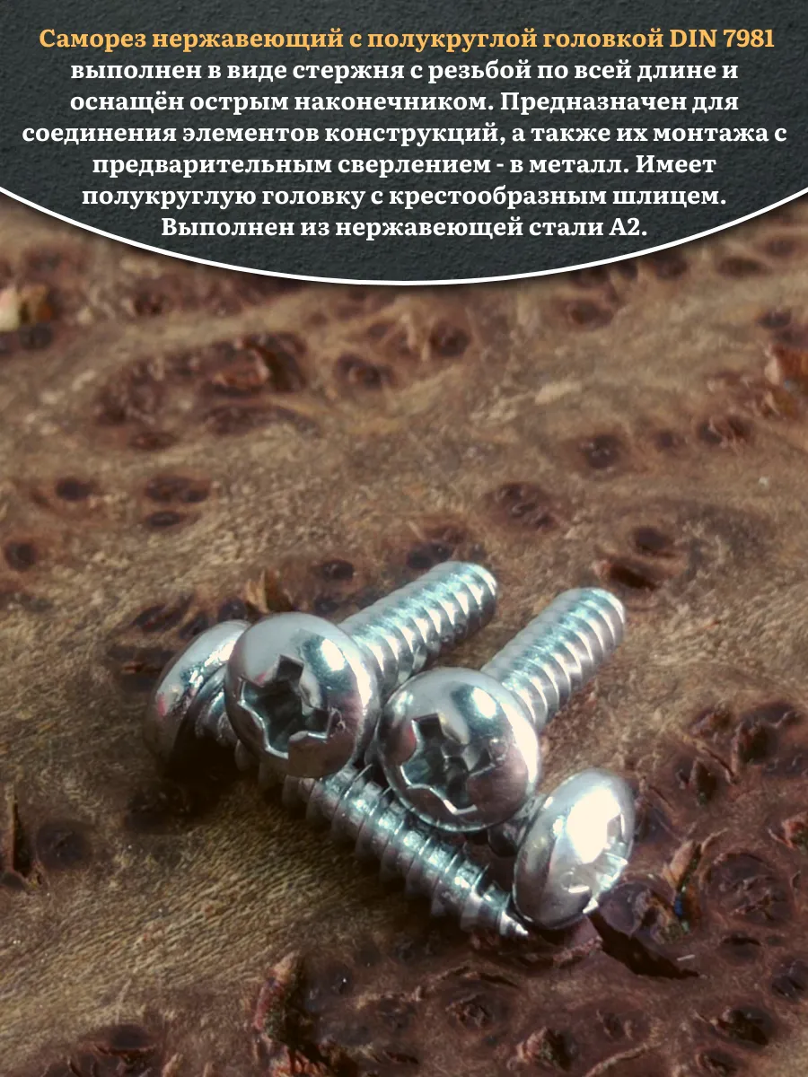 Саморез нержавеющий полукруглая гол. 4,2х13 DIN7981 , 50 шт.