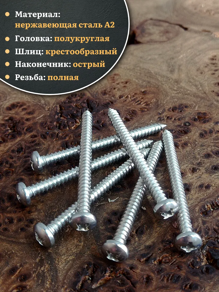 Саморез нержавеющий полукруглая гол. 4,2х50 DIN7981 , 20 шт.