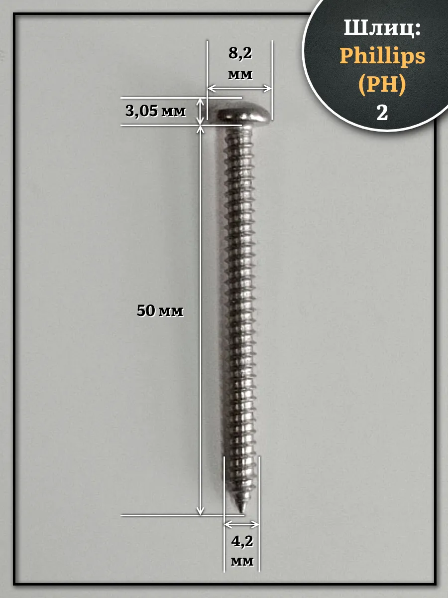 Саморез нержавеющий полукруглая гол. 4,2х50 DIN7981 , 50 шт.