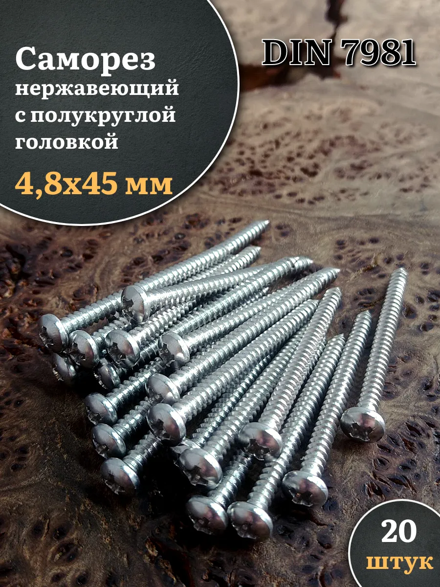 Саморез нержавеющий полукруглая гол. 4,8х45 DIN7981 , 20 шт.