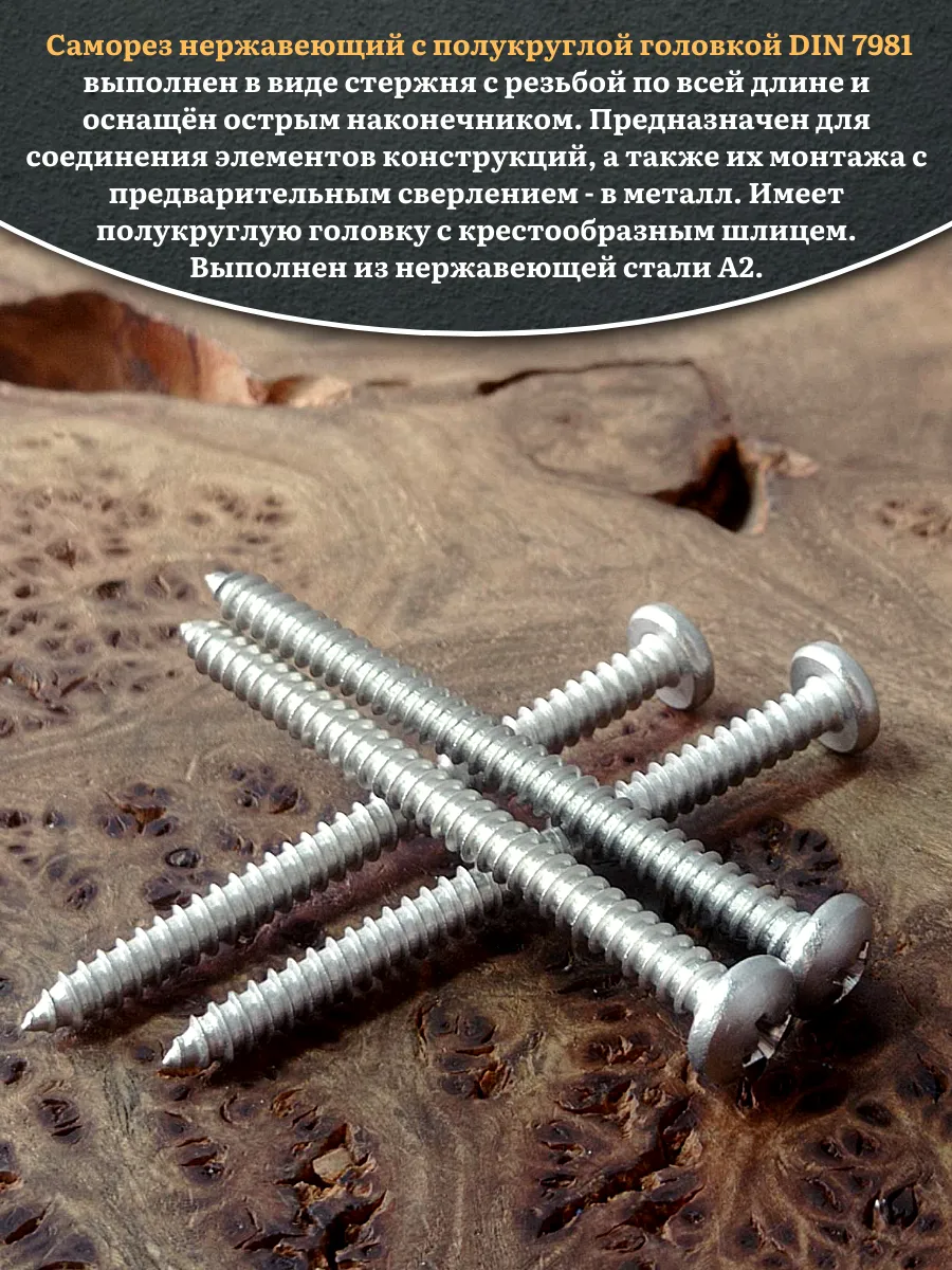 Саморез нержавеющий полукруглая гол. 4,8х60 DIN7981 , 20 шт.