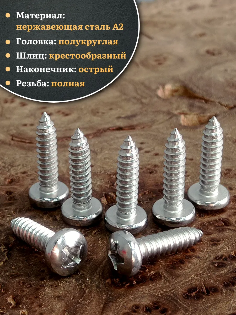 Саморез нержавеющий полукруглая гол. 6,3х25 DIN7981 , 20 шт.