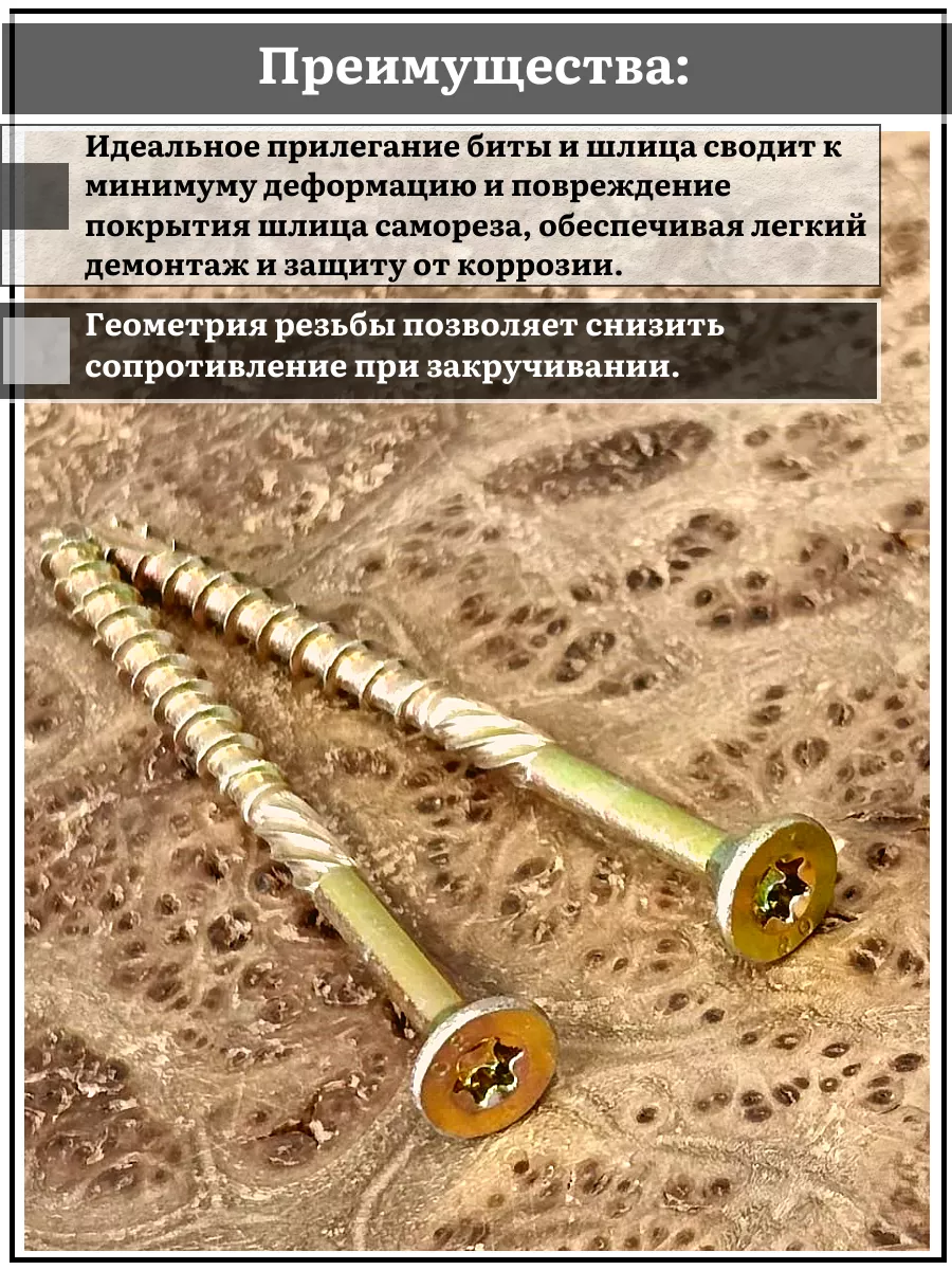 Саморез по дереву потайной Torx 10х100 ЖЦ, 50 шт.
