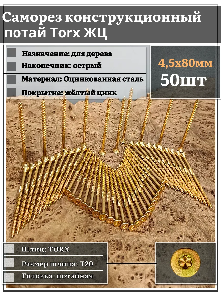 Саморез по дереву потайной Torx 4,5х80 ЖЦ, 50 шт.