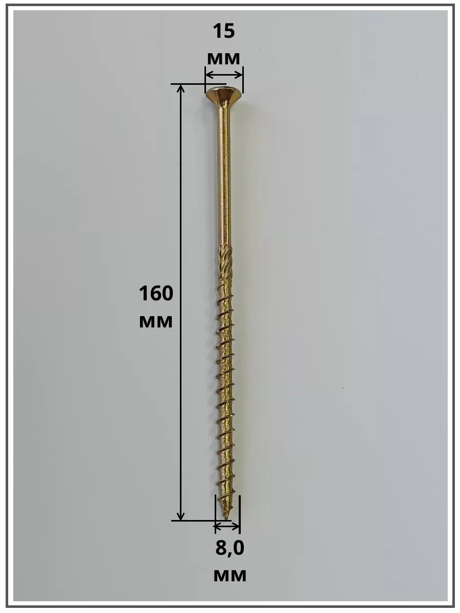 Саморез по дереву потайной Torx 8х160 ЖЦ, 20 шт.