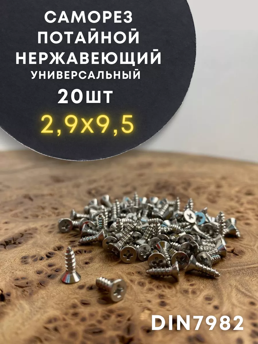 Саморез потай нержавеющий 2,9х9,5 РН DIN7982 А2, 20 шт