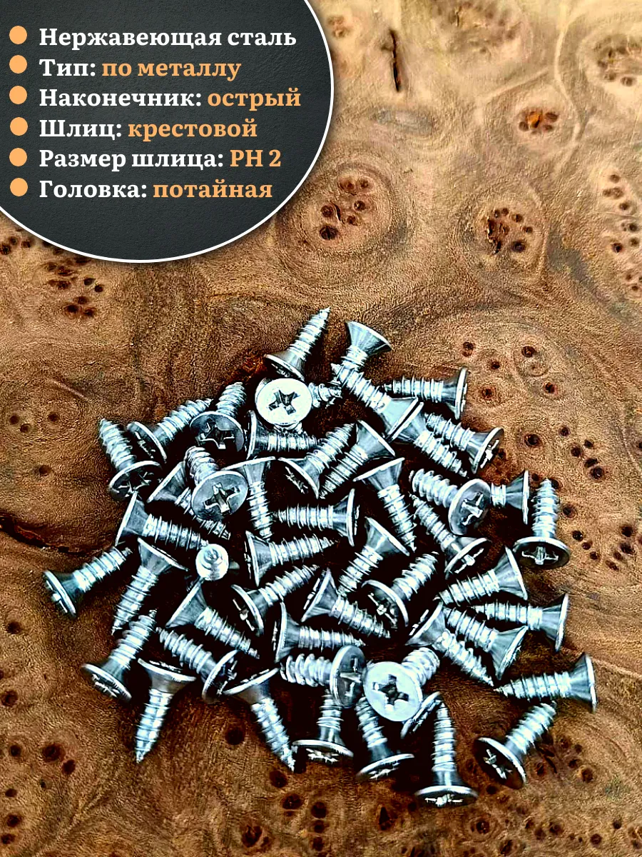 Саморез потайной нержавеющий 3,9х13 РН DIN7982 , 50 шт.