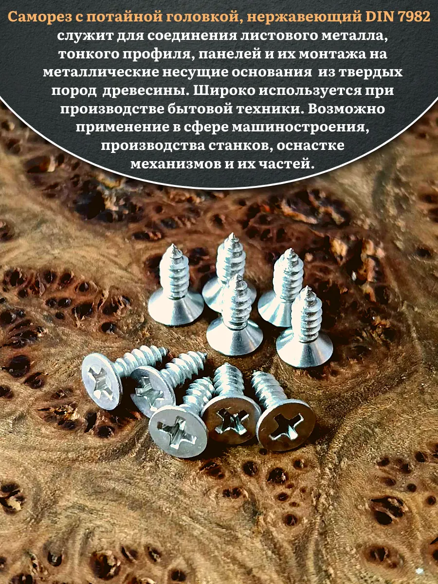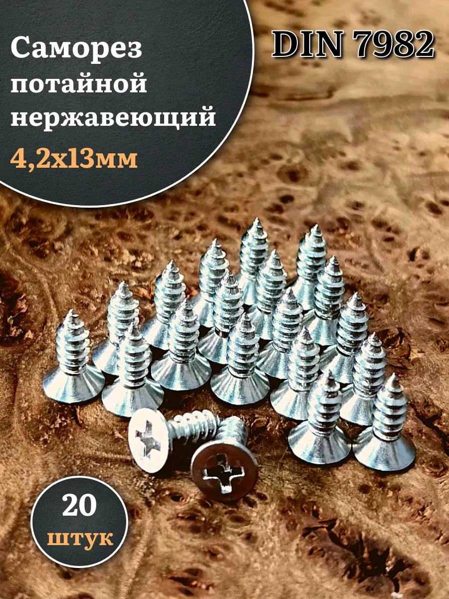 Саморез потайной нержавеющий 4,2х13 РН DIN7982 , 20 шт.