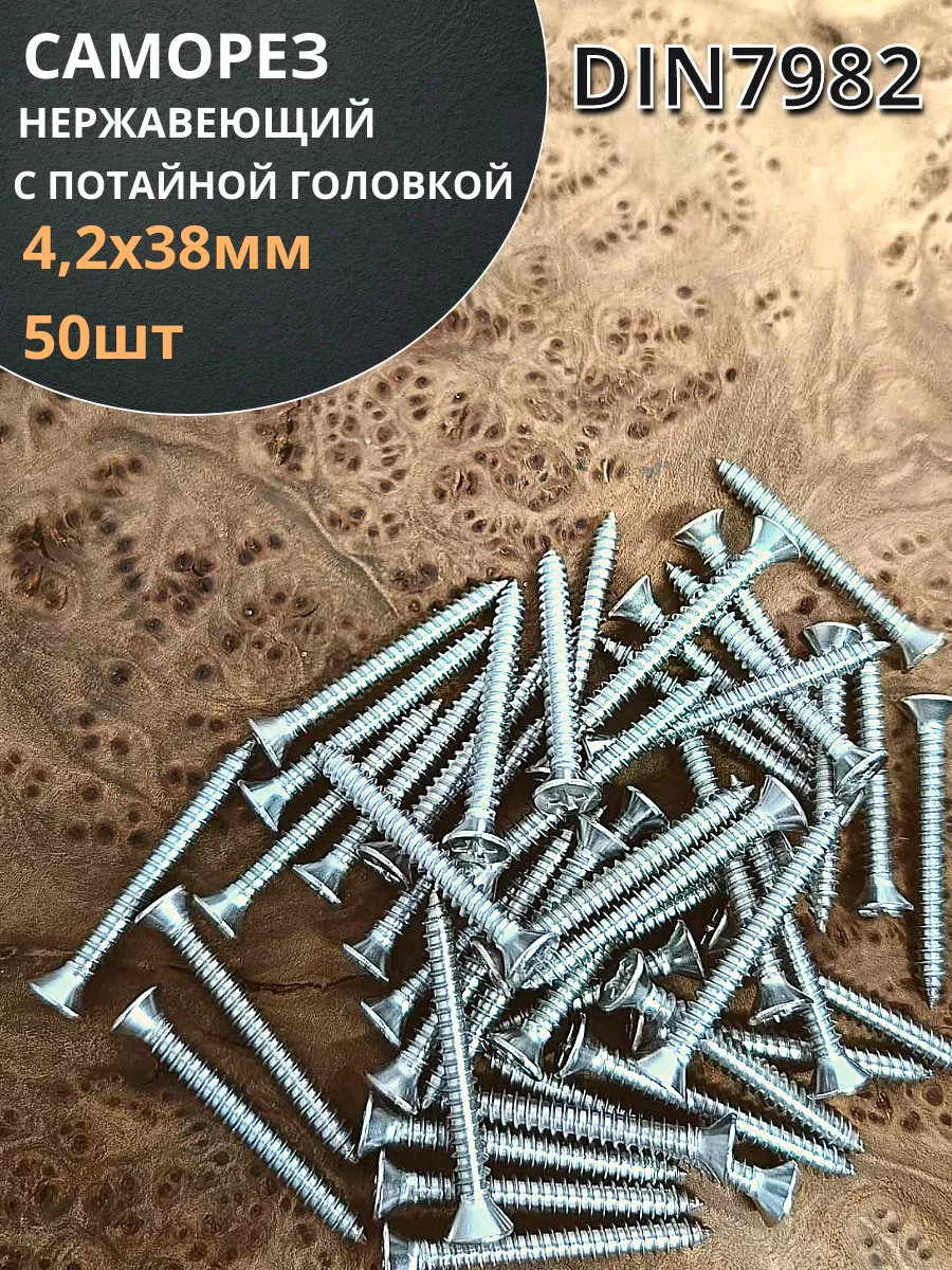 Саморез потайной нержавеющий 4,2х38 РН DIN7982 ,50 шт.
