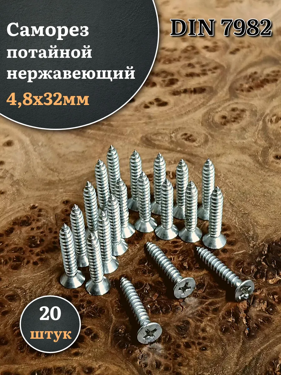Саморез потайной нержавеющий 4,8х32 РН DIN7982 , 20 шт.