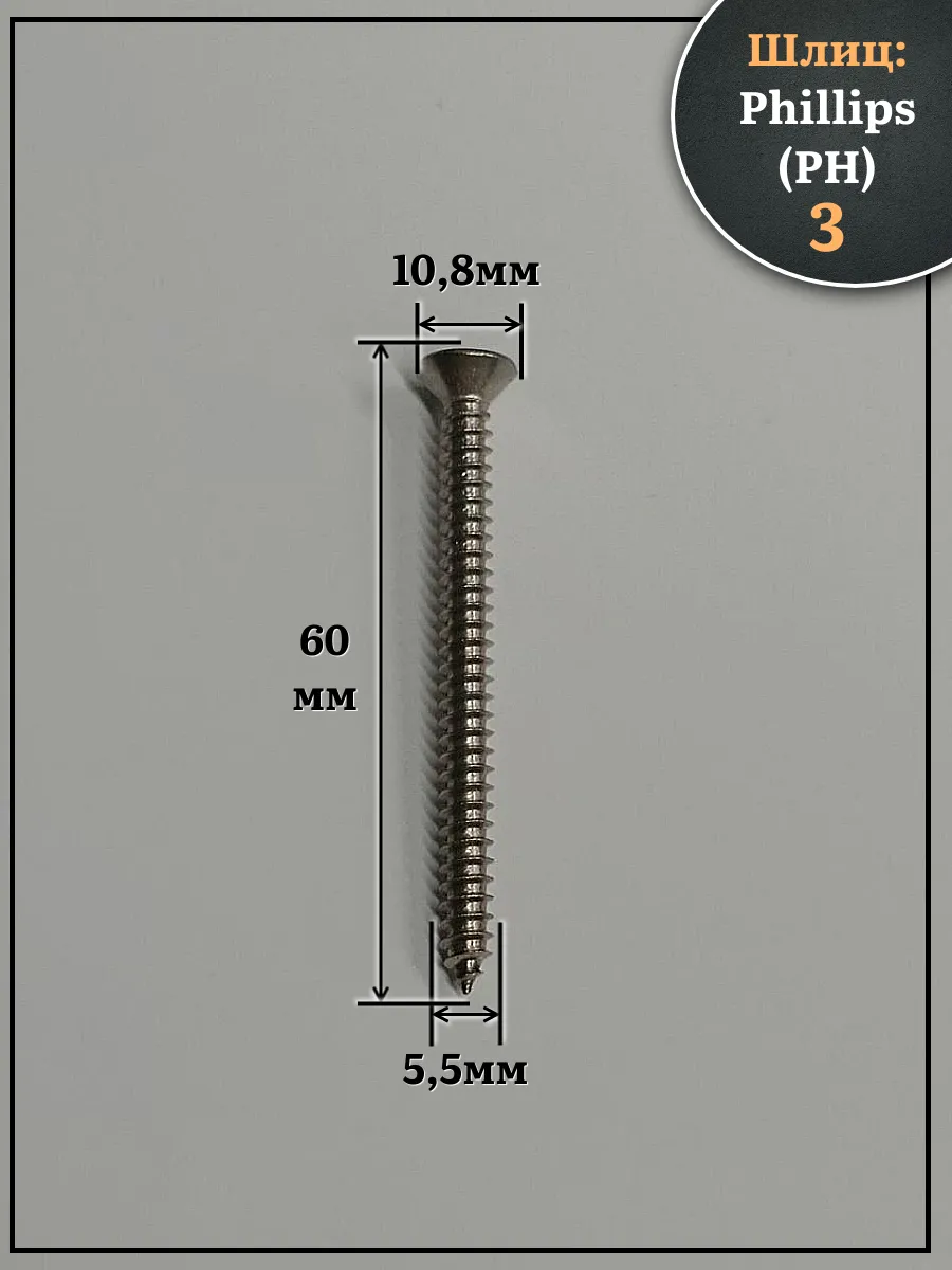 Саморез потайной нержавеющий 5,5х60 РН DIN7982 , 20 шт.