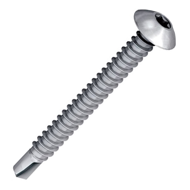 Саморез с полукруглой выпуклой головкой JT3-FR-3-5,5х50 S12, нержавеющий предназначен для монтажа листов алюминиевого гофрированного профиля, а также отделочных фасадных листов к алюминиевому основанию толщиной от 3 мм. Саморез оснащён выпуклой полукруглой головкой с звездообразным шлицем Torx, стержнем с полной метрической резьбой и самосверлящим наконечником-буром. Изготовлен из нержавеющей стали A2 (AISI 304), которая защищает от атмосферных воздействий и влаги, а также повышает устойчивость к окислению, ржавчине, излому и истиранию. Уплотнительная шайба с EPDM прокладкой надёжно герметизирует отверстие, защищая его от влаги. Не требует предварительного сверления отверстий.
