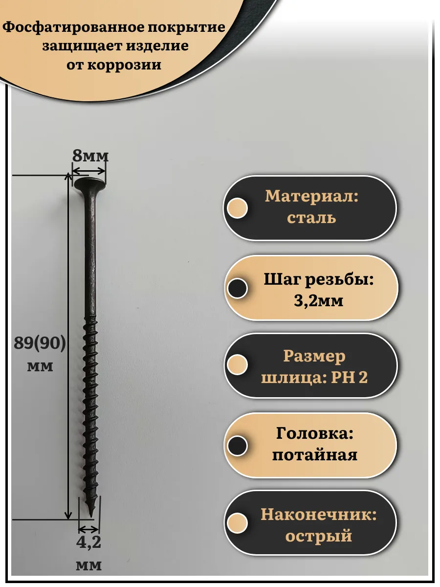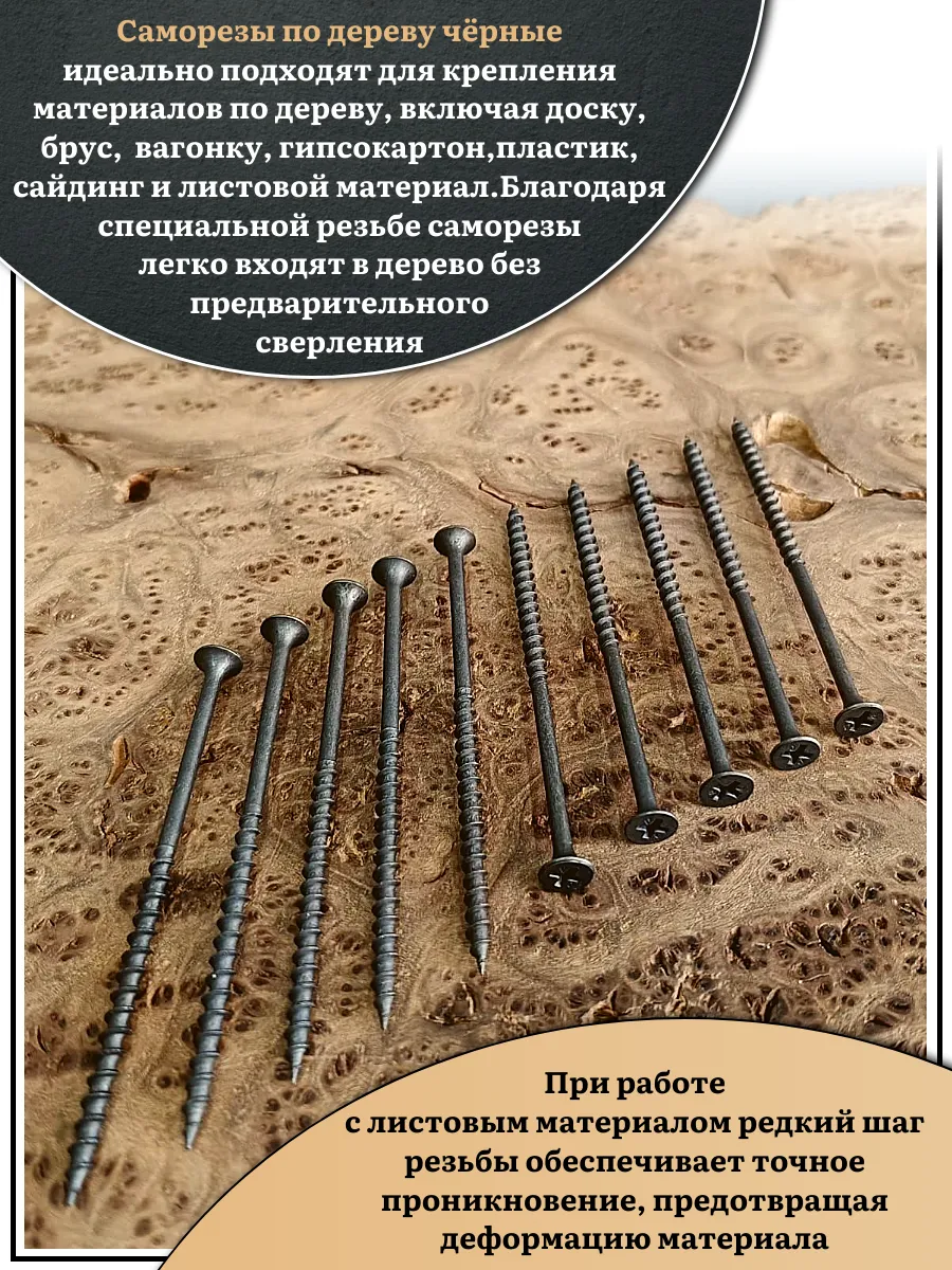 Саморез шуруп по дереву 4,2х89(90) крупная резьба, чёрный 50 шт.