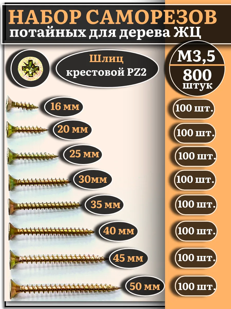 Саморезы по дереву М3,5 ЖЦ набор 3 ( 800 шт)
